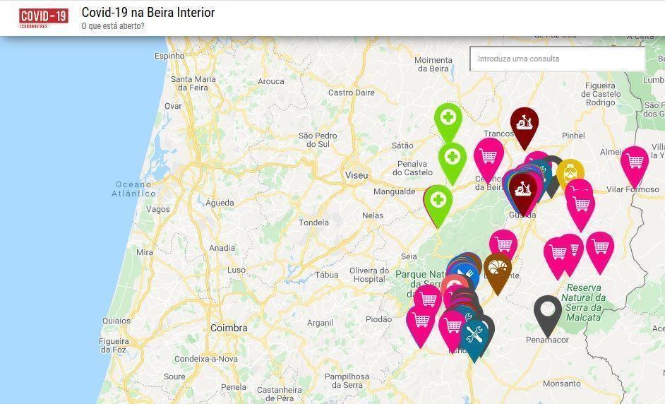 “Covid-19 na Beira Interior” permite ainda selecionar o tipo de estabelecimento a pesquisar, de uma listagem que inclui venda de alimentos (restaurantes, supermercado/Mercearia ou padaria, entre outros), serviços (entrega de gás e reparações ao domicílio, de eletrodomésticos ou de automóveis), saúde (clínica e farmácias) e ainda explicações online, quiosque, bombas de combustível take-away e entregas.
