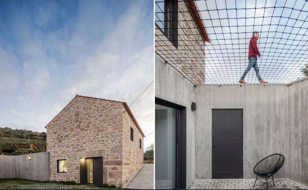 Para além da preocupação com a luz natural, da construção virada a Sul e da inspiração em alguns elementos (que explicam, por exemplo, a “intenção da reinterpretação dos socalcos”) houve ainda espaço para uma inovação que se destaca. Há uma rede que se sobrepõe a um pequeno pátio e que surge com duas funções: “primeiro, a de resguardo, porque está por cima de um pátio inferior, e a ideia foi criar uma barreira que permitisse a passagem sem ser através da construção de um típico guarda-corpos com 90 centímetros de altura; e depois, obviamente, ser um espaço de contemplação, de leitura e de relação com a paisagem.”