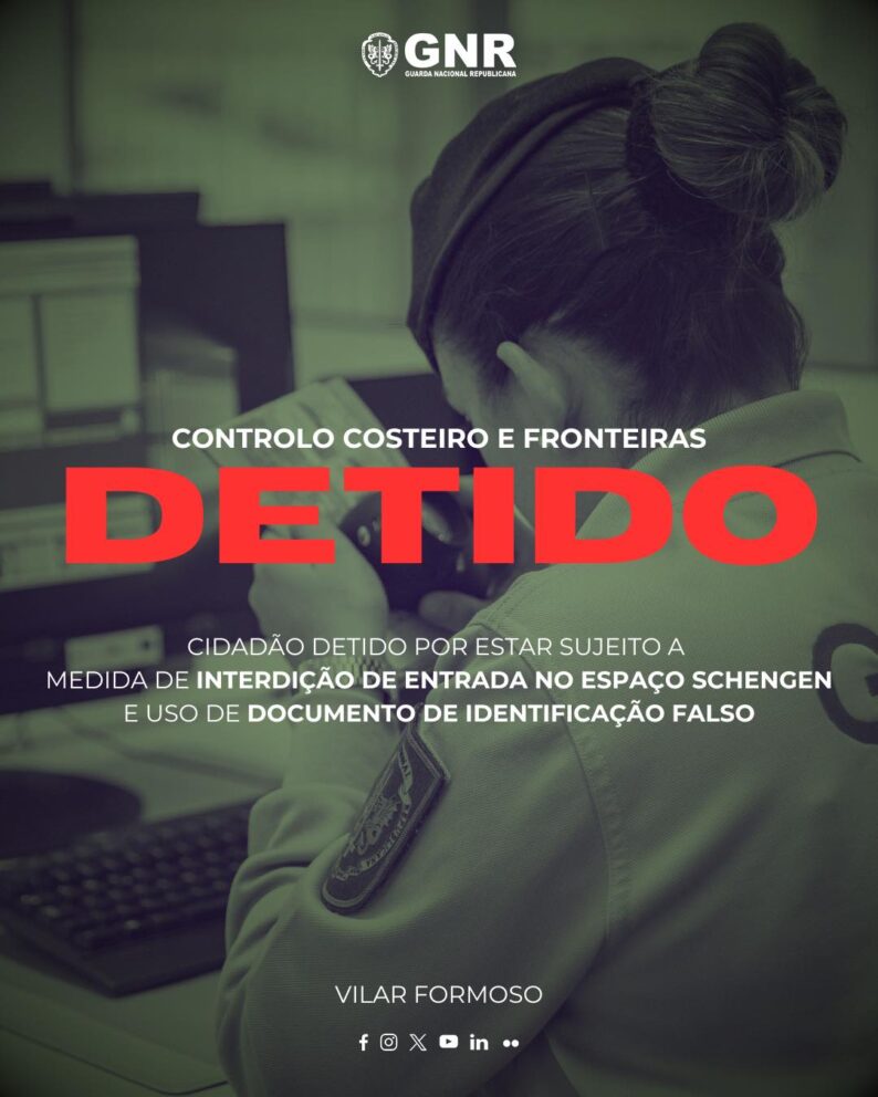 “Na sequência de uma abordagem a um veículo, o condutor apresentou um passaporte válido e, após consulta no Sistema de Informação Schengen (SIS), verificou-se que sobre o suspeito recaía uma medida de interdição de entrada no Espaço Schengen”, adianta a GNR em comunicado enviado hoje à agência Lusa.
