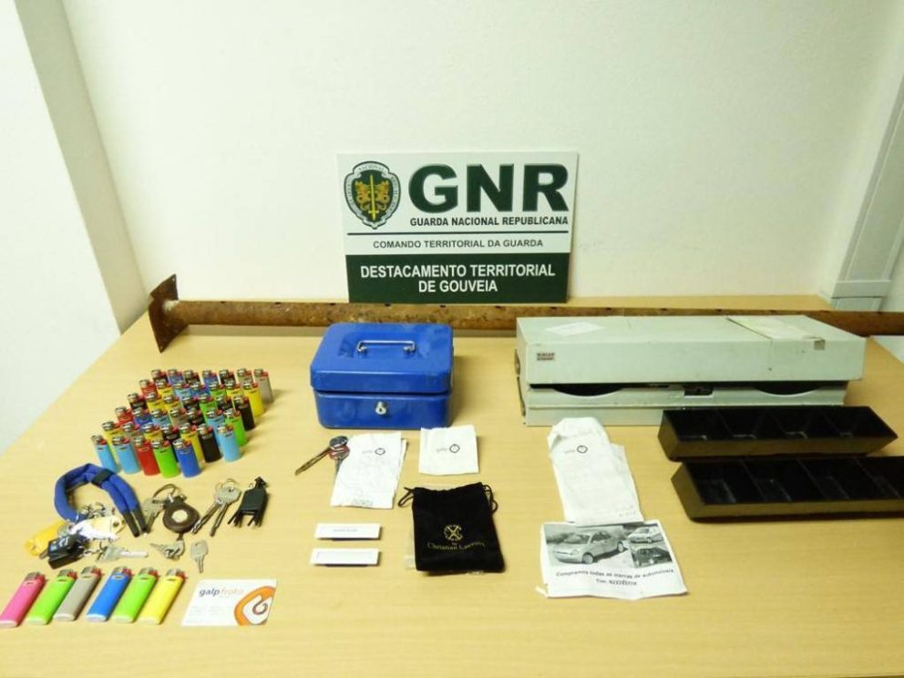 De entre os objetos recuperados pela GNR destaca-se um cofre, uma gaveta de uma caixa registadora, um prumo metálico extensível usado para efetuar o furto, um cartão de abastecimento, três carteiras, 46 isqueiros e várias chaves.