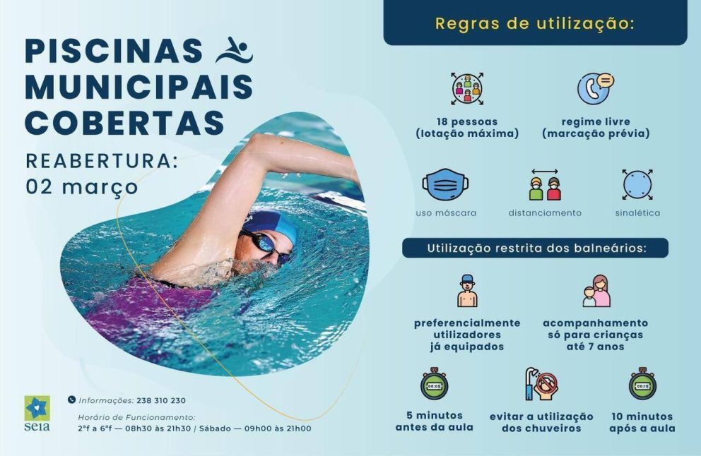 A Piscina Municipal coberta de Seia funciona de segunda a sexta-feira das 08h30 às 21h30 e aos sábados das 09 às 21 horas.