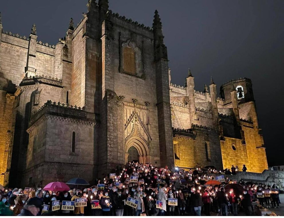 A Praça Luís de Camões, na Guarda, acolheu ontem à noite uma “Vigília pela Paz” na Ucrânia que contou com várias dezenas de pessoas. Juntaram-se alguns elementos da comunidade ucraniana na região e outros cidadãos com bandeiras da Ucrânia e cartazes para apelar ao fim da invasão russa.